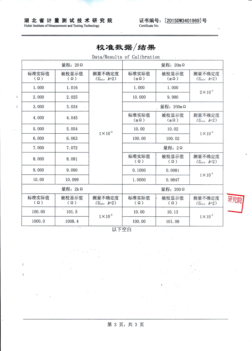 測量范圍 0.01A:   1μΩ~2kΩ