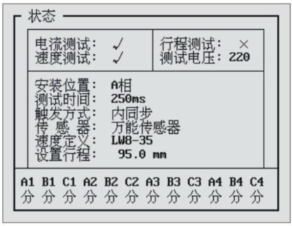 答:選擇【測試】-【合閘測試】,儀器液晶顯示屏的最下方有12斷口的實(shí)時狀態(tài)顯示。屏幕顯示如下圖: