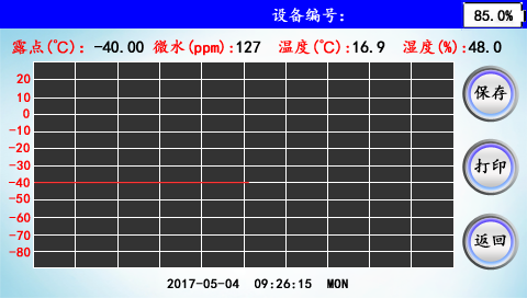 首先打開面板上的流量閥調節(jié)流量,把流量調節(jié)到0.6L/min左右,開始測量SF6露點。第一臺設備測量時間需要5~10分鐘,其后每臺設備需要3~5分鐘。