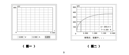 首先,在主菜單界面,旋轉(zhuǎn)鼠標(biāo)將光標(biāo)移動(dòng)到【測(cè)試】選項(xiàng)上,按下旋轉(zhuǎn)鼠標(biāo)選擇【伏安】即可進(jìn)入伏安特性試驗(yàn)設(shè)置界面。我們?nèi)〕鰧?dǎo)線包中的(紅、黑)二次線,一頭插在 CT 的二次側(cè),另一頭插在儀器的伏安特性輸出口上便可。然后我們?cè)O(shè)定好最大輸出電流和電壓后單擊【自動(dòng)試驗(yàn)】選擇【確定】試驗(yàn)開始。此時(shí)裝置將自動(dòng)按照設(shè)定值進(jìn)行升壓升流,并記錄其數(shù)值(圖一)。當(dāng)達(dá)到設(shè)定值后試驗(yàn)結(jié)束,并進(jìn)行簡(jiǎn)單的退磁,當(dāng)退磁結(jié)束后便進(jìn)入試驗(yàn)結(jié)果界面(圖二)。