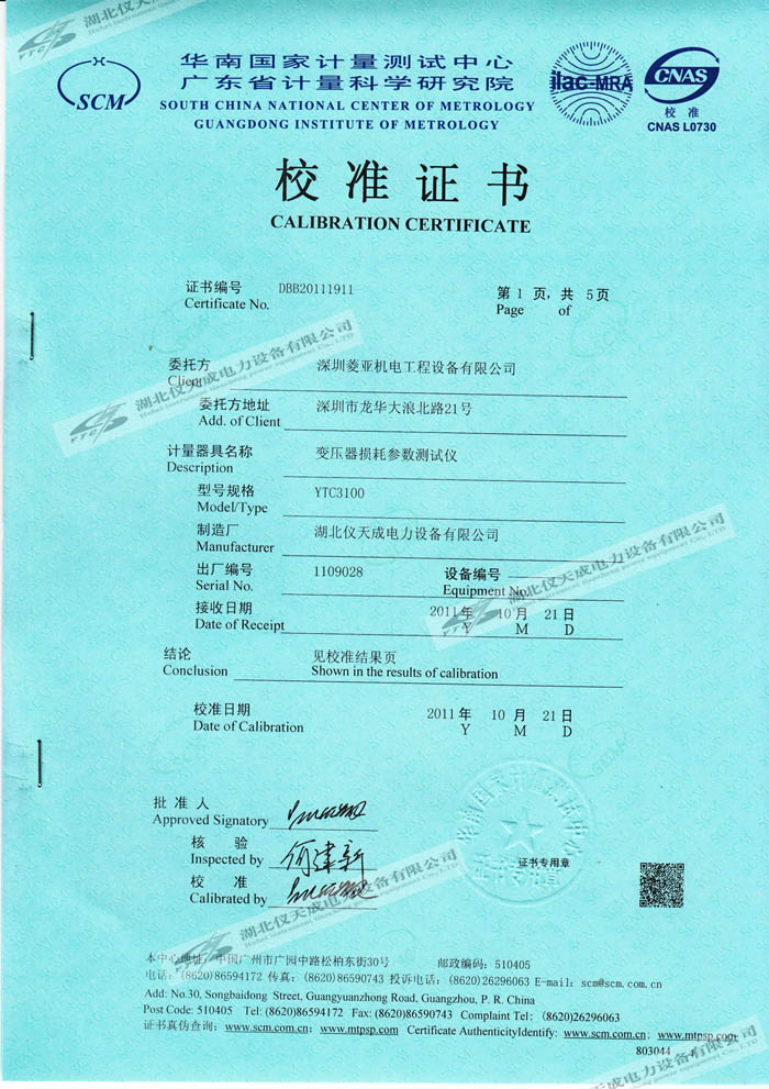 轉(zhuǎn)載:"YTC3100變壓器損耗參數(shù)測(cè)試儀的資質(zhì)證書" 請(qǐng)注明來源于儀天成電力。 更多技術(shù)問題請(qǐng)致電儀天成電力客戶服務(wù):027-87876585,技術(shù)部專線:027-87876585,在線客服:719388481