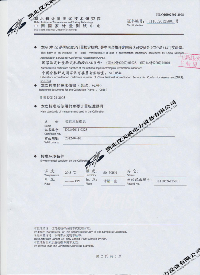轉(zhuǎn)載:"YTC3100變壓器特性及容量測(cè)試儀的資質(zhì)證書" 請(qǐng)注明來(lái)源于儀天成電力。 更多技術(shù)問(wèn)題請(qǐng)致電儀天成電力客戶服務(wù):027-87876585,技術(shù)部專線:027-87876585,在線客服:719388481